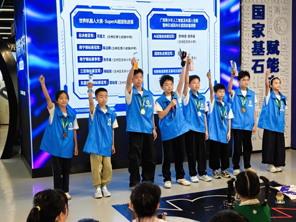 活动开场,3位科创学长的短视频分享率先点燃现场热情。从桂林信息科技学院毕业、凭机器人比赛奖项入职广西电网的莫宙霖;到香港理工大学无人机方向研究生覃琦钧,再到斩获多项科创赛事奖项、拿下4项专利的袁家豪;他们用亲身经历证明,科创之路不仅能赋能成长,更能铺就未来坦途。随后,四位嘉宾带来全链条干货分享,为现场听众精准答疑。玉林市科技馆馆长蔡斯曼以脱口秀式演讲讲述成长故事,打破“科研高不可攀”的壁垒,传递好奇心与成长型思维的重要性;玉林市教育技术和信息化中心副主任李剑勇深度解读科技特长生招生政策,拆解竞赛白名单、赋分标准与录取流程,让“升学通道”变得清晰可见;玉州区第八初级中学教师黄炫维接地气分享科创教育经验,为青少年科创实践提供实用技巧;玉林师范学院物电学院教授闭吕庆则从高校视角出发,解析强基计划、专业资源与就业前景,用硬核数据印证“学科技有前途”。最令人期待的“少年献宝”环节,将现场氛围推向高潮。3组玉林科创佼佼者登台路演:容县中学陈劲兆带来的投篮姿势矫正器,以低成本、高实用性的科创巧思收获点赞;鼎佳启学机器人活动中心的8人团队,携Super AI超级轨迹赛项亮相,世界机器人大赛总决赛亚军、广西锦标赛冠军等荣誉惊艳全场;阳光稻田艺术科技中心6人团队凭借2025年世界机器人大赛ATC科战未来赛项的冠亚季军成绩,展现了玉林少年的科创实力。现场专家精准点评,为小创客们的作品赋能,也让台下观众真切感受到“我也可以”的力量。